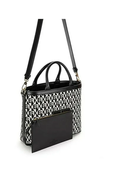 Elisabetta franchi zwarte kleur dameszak twee handgrepen. Pochette in combinatie. Metingen: 30 x 24 x 11 cm.