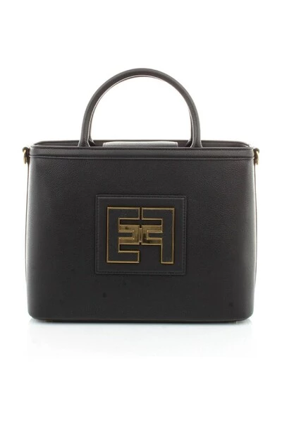 Elisabetta franchi Logata zwart baghandmodel EF -logo in metalen goudkleurafsluiting met stijve handgrepen verwijderbare schouderbanden
