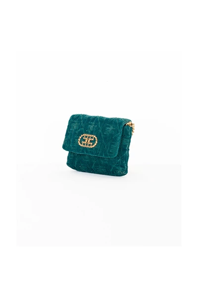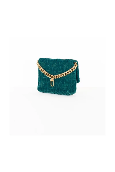 Piccolo Marsupio Elisabetta-franchi in Velvet met All-Over Quilted Logo. Musk van de bevestiging aan de verstelbare riem in lichtgouden ketting. Metaal Logo Metal Gold frontaal. Sluiting met flap en magnetische knop. (10x13x2cm)