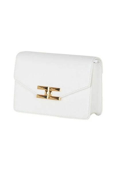 Pochette Elisabetta -franchi in dergelijke. Gouden ketting schouderriem. Muurzak met sluitende zip- en ritszak aan de buitenkant. Metal Metal Logo Detail. Sluiting met flap en magnetische knop (ongeveer 14x20x7cm)