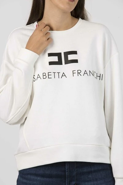 Wit sweatshirt van Elisabetta Franchi. Bedrukt met het logo van het merk. Ronde halslijn. Geribbelde manchetten, onderkant en halslijn. Materiaal: 65% katoen, 35% polyester Productstijl-ID: MD00116E2 Deze beschrijving is automatisch vertaald.