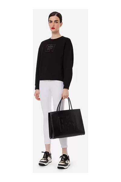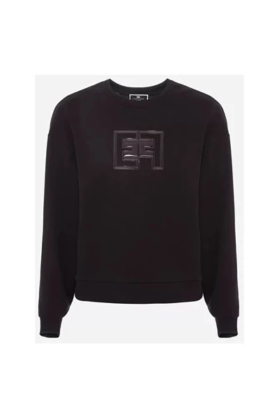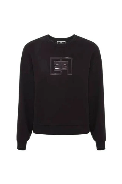 Ronde hals katoen sweatshirt met oversized en asymmetrisch laag. Het detail van het logo wordt gevormd door een gevoerde patch die het EF -logo met vinyleffect vertegenwoordigt. Technische beschrijving: