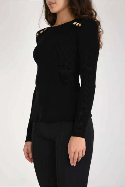 – Chrong- met padbottiet-soldeers- lange lange metalen shews op de schouders- Samenstelling: 49% viscose 30% polyester21% polyamide- gemaakt in Italië