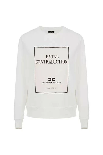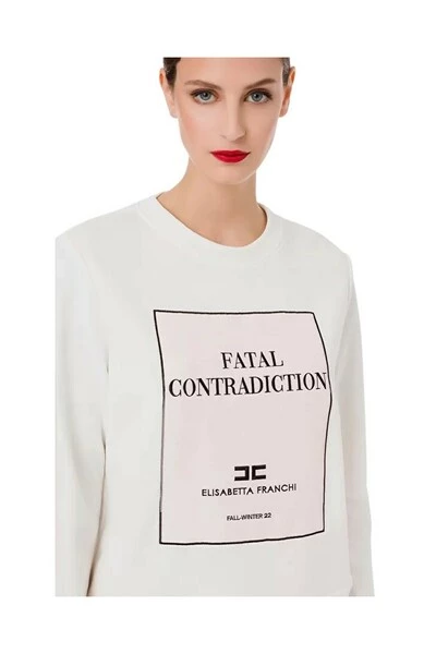 Ronde nek katoenen sweatshirt met rechte maat. Het front draagt een contrast -borduurwerk, een organdí -paneel met de registratie ;fatale tegenstrijdigheid; en het EF -logo. MD00726E2 Technische beschrijving: katoen sweatshirt lange mouwen ronde nek rechte maten geborduurde organdí
