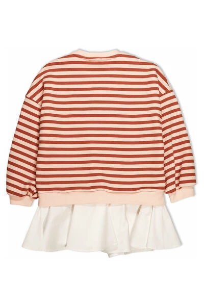 Elisabetta-franchi-jurken roze katoenen fleece jurk, gestreepte print, dubbel-c borduurwerk aan de voorkant, bemanningslid, lange mouwen, flomeren op bodem, geribbelde kraag en manchetten. Samenstelling: 65% katoen, 35% polyester. Behandeling: Machine Wash Max 30 ° zachtaardig. Gemaakt in Italië