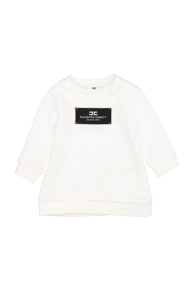 Elisabetta franchi jurken Ivoor – pluche jurk – katoenmengsel – Crew Neck – Long Mouwen – Logo -applique vooraan