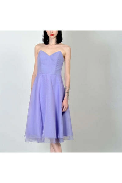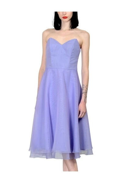 MIDI -jurk in Organza Elisabetta -franchi. Lavendelkleur. Bustiers met een rokrok met twee getallen met een onzichtbare rits in het midden. Gevoerd. 100% Polyester. Gemaakt in Italië. De riem wordt afzonderlijk verkocht, deze is niet inbegrepen.