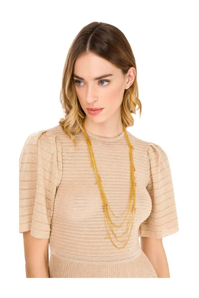 Een cascade van licht voor deze ketting door Elisabetta -franchi. Het accessoire is gemaakt van multifire met micro-diamond ketens met openwork Elisabetta Franchi Let Charms in Light Gold. Accessorise Your Outfit met een luxueuze Bijoux!