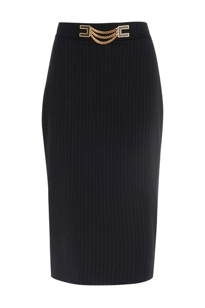 Elisabetta Franchi Black Gessa -rok in verse wol. Hoge levensduur hoge spleet op de achterkant van de achterkant: 53% polyester, 43% maagdelijke wol, 4% elastaan