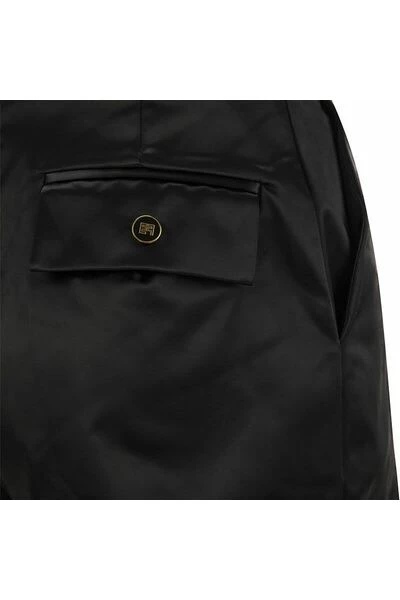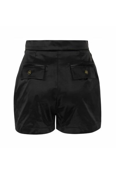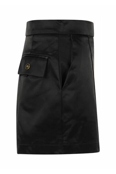 Satijnen shorts met hoge taille satijnen shorts met rechte been en centrale reizigers vouw, zijzakken en flappen op de achterkant bevestigd met glazuur- en gouden metalen logo-knoppen.- Stretch satijnen shorts