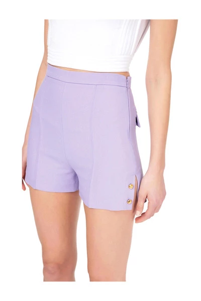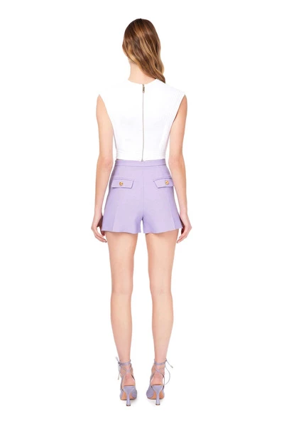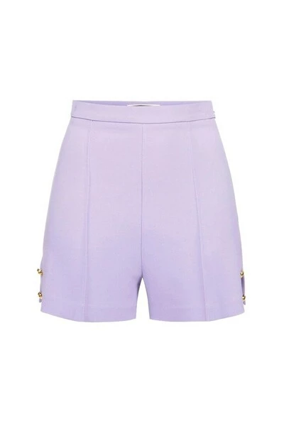 Shorts met een hoge taille en gestikte snit in het middenfront. Aan de onderkant van het been, aan de zijkant, is er een kleine spleet verfraaid met twee knoppen uit de collectie. Gemaakt van zware viscose crêpe stof.
