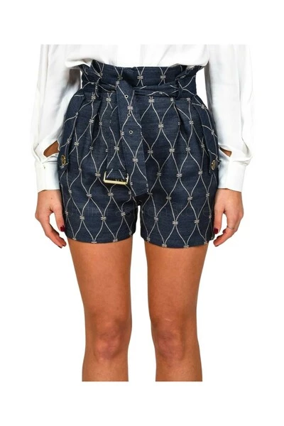 Korte broek met een zachte pasvorm, strak in de taille met een snoepjeseffect met een geknoopte riem en diepe plooien aan de voor- en achterkant.