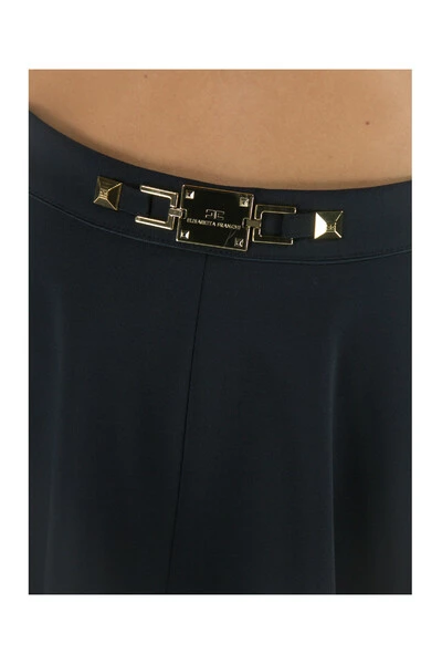 Dameswielrok Elisabetta -franchi. Minimalistische lijnen met fascia in het leven begrensd door leidingen in toon op toon. Gekenmerkt door metalen plaat met klem en logo. Zakken langs de zijkanten. Merk: Elisabetta Franchi Artikelcode: GO50027E2 Samenstelling: 96% polyester, 4% elastaan. Lijn: 97% polyester, 3% elastan. Pass: het model is 164 cm hoog en draagt ​​maat 40.