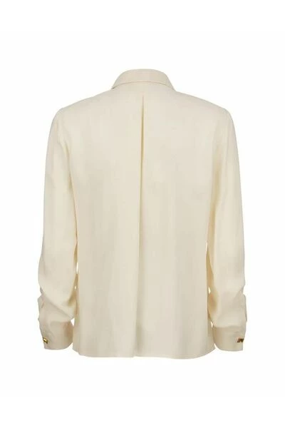 Het must-have shirt van het merk met een mannelijke kraag en slanke pasvorm, de netheid van het kledingstuk wordt alleen verbeterd bij de manchetten door gouden metalen logo manchetknopen. De stof is een zware viscose -georgette met een vloeiend gevoel.