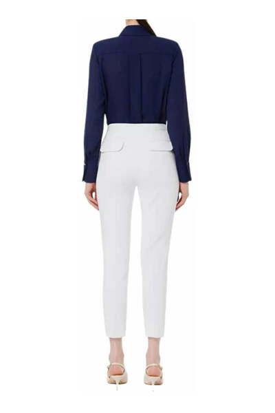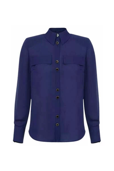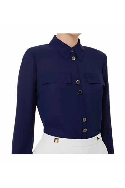 Long -sleeved georgette shirt met een rechte lijn ondertekend door Elisabetta -franchi, gekenmerkt door belangrijke schouders ondersteund door interne riemen, borsthoogte -patches en motief van logo -knoppen geplaatst in gepolijste paren en gouden metaal. Details shirt in georgette lange mouw belangrijke schouders met interne riemen op de borsten op de 100% gepolijste knoppen polyester kabeljauw. CA01426E2