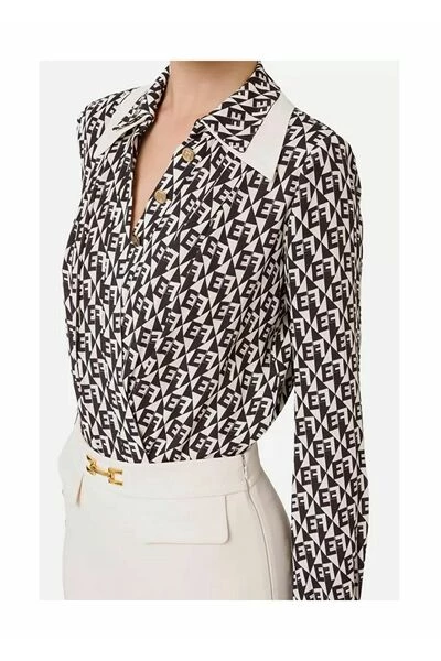 Cross -body shirt elisabetta franchi. De kruising aan de voorkant creëert een diepe halslijn. Lange mouwen met manchet- en goudkleurige knopsluiting. 100% viscose