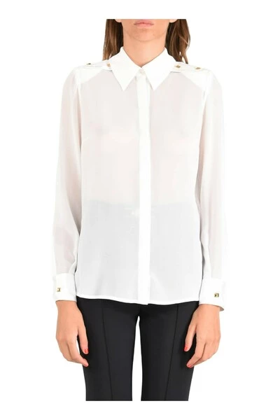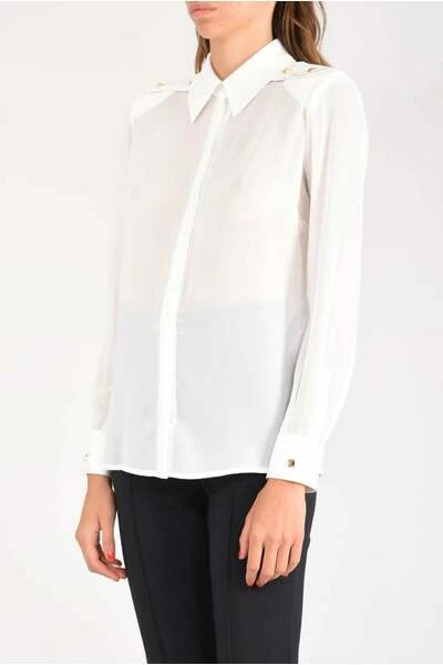 – Lange mouw in Georgette-rechte lijnmonsters op de schouders-knop met gouden studs-compositie: 100% polyester- gemaakt in Italië
