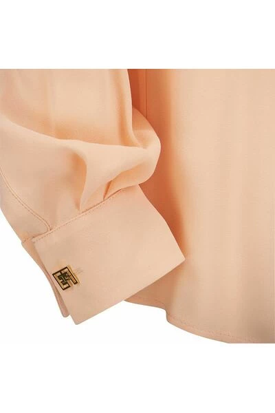 Het must-have-shirt van het merk met een messh-halsband en slanke pasvorm, de netheid van het kledingstuk wordt alleen verbeterd bij de manchetten door gouden metalen logo manchetknopen. De stof is een zware viscose Georgette met een vloeibare gevoel.