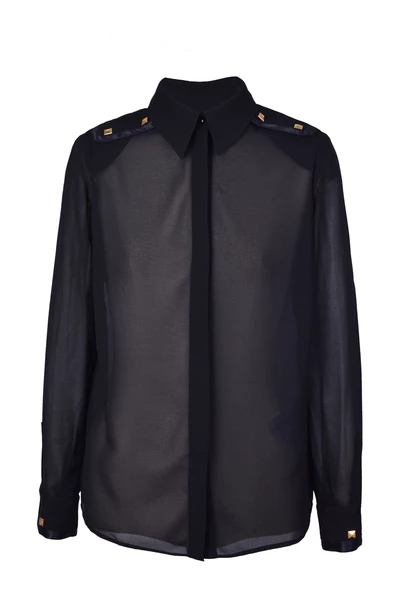 Elisabetta franchi shirts zwarte klassieke kraag insignes met lange mouwen insignes motief in satijnen dubbele stud knop met logo in gouden metaal