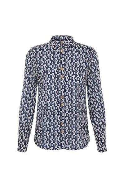 Half -man -geprinte georgette shirt Lodent met verlies van hoge ornamenten in goudmetaal met logo