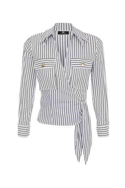 Wit verticaal gestreepte katoenen katoenen papelina, gekruist aan de voorkant en aan de zijkant vastgebonden. Het presenteert brede balgzakken die zich op de borsthoogte bevinden die eindigen in drukknoppen met gouden metalen maxitacha. De vuisten met zoom uiteinde in dubbele knoppen met gouden metalen hiel. CA01526E2 Technische beschrijving: katoenen popelin shirt voorste zijkanten met manchetten met manchet met tweelingknoppen compositie: