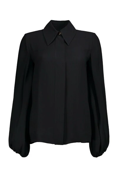 Lange mouwen met elastische ballon op de polsenspuntige kraag een gouden weergave knop met Centraal CUSSEL-logo op de achterste rechte zoom Product Specificaties Samenstelling: 100% Viscose gemaakt in Italië