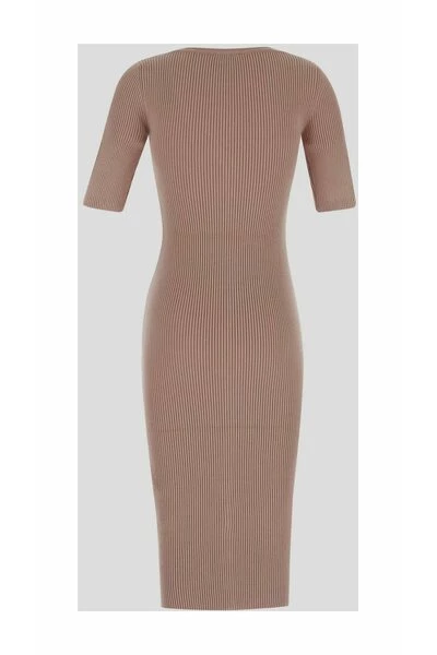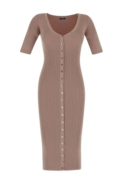 Elisabetta Franchi Midi -jurk in naaktviscose met geribbelde textuur en voorsluiting met knoppen.