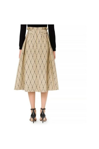 Rok vrouw Elisabetta franchi beige kleur. Midi rok op wielen. All-over logo. Taille lussen met riem. Model: Go00821E2A16Composition: 52%polyester 48%katoen