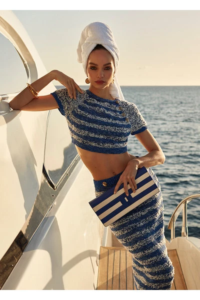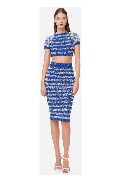 Half gestreepte beenrok met knoppen, GK17M 02E2 565 Cobalt, Elisabetta franchi