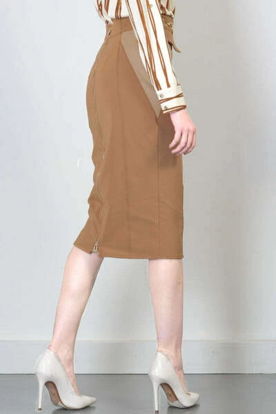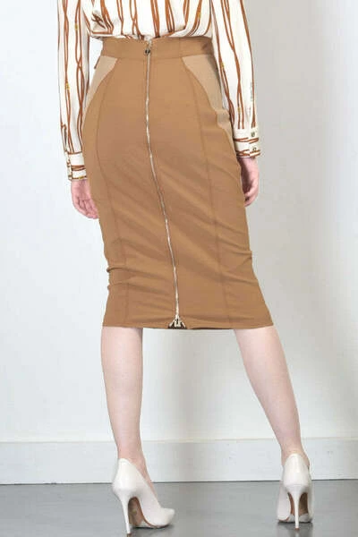Tubino rok in bielastische stof. MOU -kleuren voegen op het net in. Fascion voor metalen klemmen. Hoge taille. Metalen ritssluiting achter de gehele lengte van de rok. 84% polyamide 16% elastaan