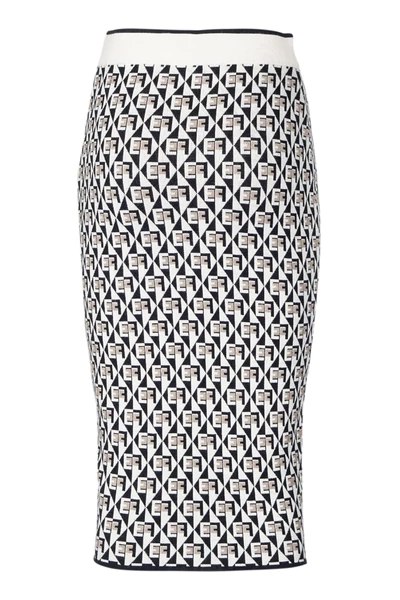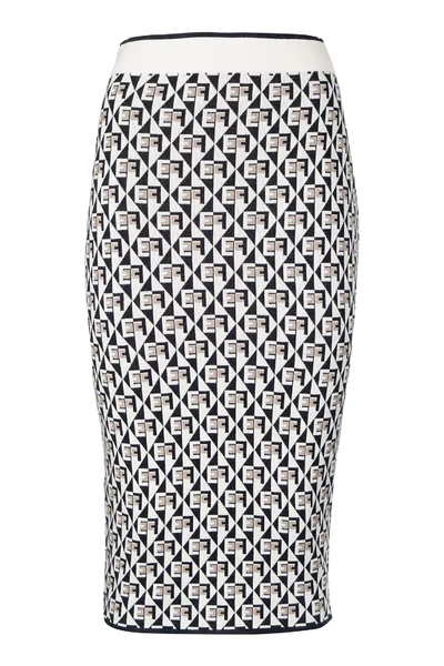 Elisabetta franchi rokken Jacquard kokerrok met logo -rhombusontwerp. Band in de taille om het silhouet te benadrukken.
