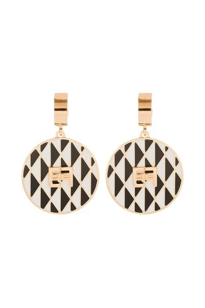 Elisabetta franchi hanger oorbellen in licht goud metaal met nonette verpleegkundige bicolor reden. Logo in reliëf in metalen metalen goud. Sluiten met vlinder.