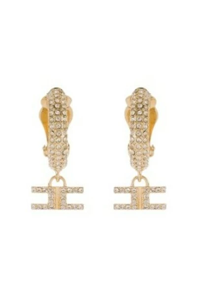Elisabetta franchi Bijoux Golden Earring met strass Motif en hanger charme. Clip sluiting. Gouden metaal. • Strass earring • hanger hanger • Clip Sluiting • Gold metalen artikel Samenstelling Metaal
