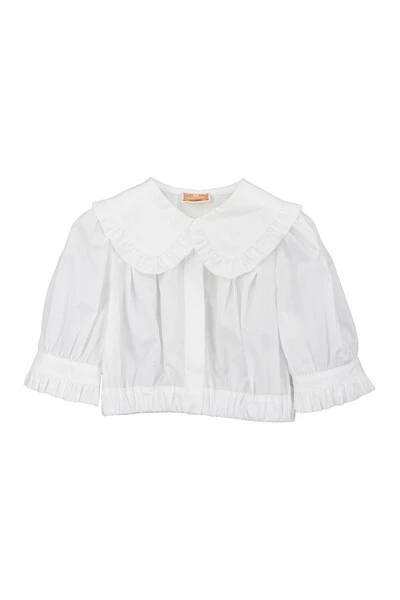 Elisabetta franchi-shirts Ivory Iplomatic Collar met ruches. Knopbevestiging. Elastische zoom. Normale pasvorm. 100% katoen. Gemaakt in Italië.