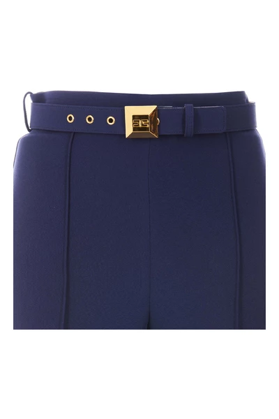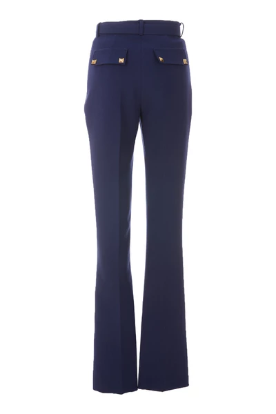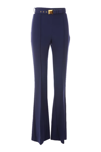 Elisabetta Franchi Blue Woman Patns, rechte been, zip en haak sluiting, bezaaid, logo riem