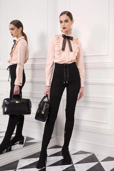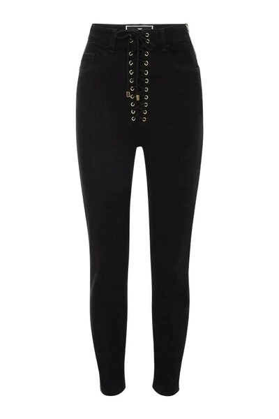 Denim Superpitillo-broek met veters die PJ59I26E2-110 Black Elisabetta-franchi sluiten