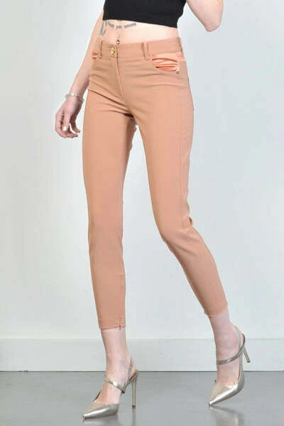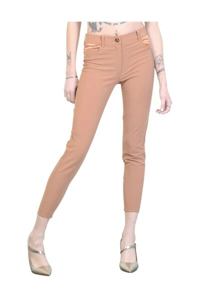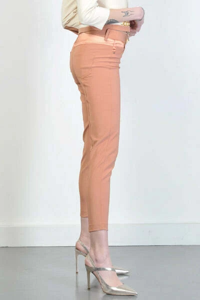 5 stretch pocketbroek met satijnen kleurinzetstukken. Rose Color Gold. hechtende pasvorm. Zip op de enkel. Sluiten met knop en zip. Samenstelling: 84% polyamide 16% elastan gemaakt in Italië