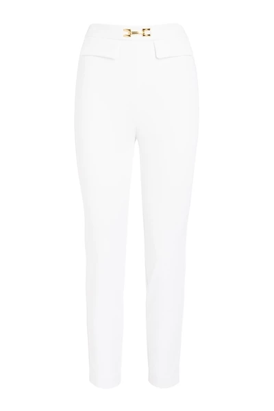 Skinny broek Elisabetta Ivory Francs in stretch crêpe. Sigarettenjurk in het levensband met logato morse nep voorzakken