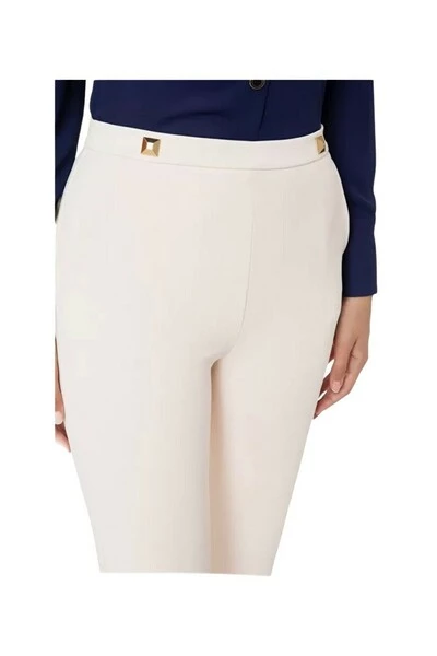Stretch scheuren broeken met sigaretten en vouwen strijken. Franse zakken aan de zijkant. De aanpassing bestaat uit twee maxi piramidale studs met afgehakte tip waarop het logo is gegraveerd, geplaatst op de fascia.