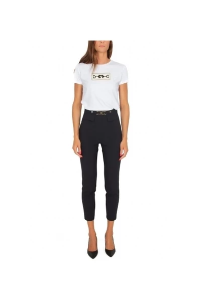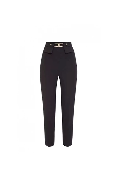 Top Life Life Line met sigarettenstof stretch stof met gouden Mooselet op de taille details Detail afsluiting met onzichtbare rits aan de zijkant droge gamba -jurk zwarte kleur zwarte stof samenstelling 96% polyester 4% elastan kledingstuk gedragen maat 40 modelhoogte 1,80 cm maat 40