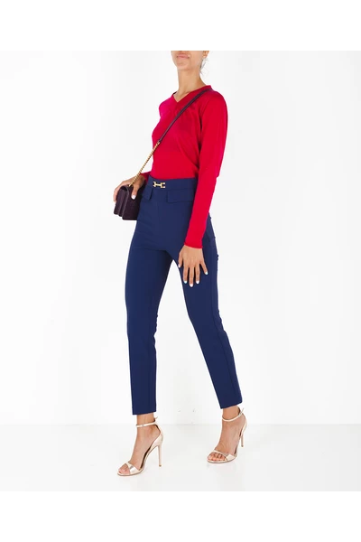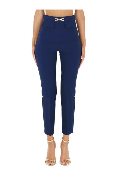 Elisabetta -franchi -broek in scheuren. High Life with Detail Logo Terminal. Rechte gesneden en gestreken vouw. Neppatronen voor de voorkant. Laterale onzichtbare zip -sluiting. Het model draagt maat 40.