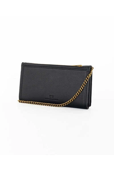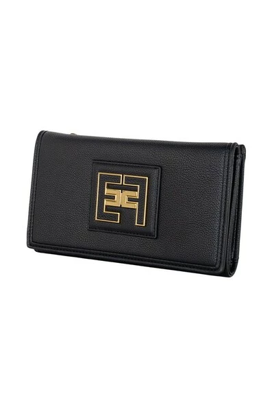 Elisabetta -franchi in -achtige portfolio. Interieurhouder en zakhouder met zijkant. Profielprofiellogo in metalen metalen goud. Metalen schouderriem scheidbaar licht goud. Sluiting met dubbele drukknop (ongeveer 12x22x3cm).