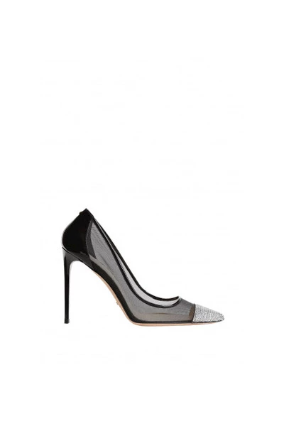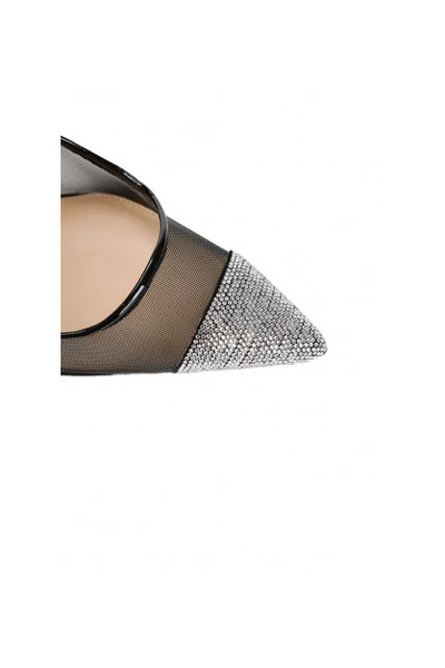 Neem de pompenpompen aan met een gelakte hiel, gemaakt van filet en gelakt leer. Het kenmerk van dit model ligt uiteindelijk in micro -strass.