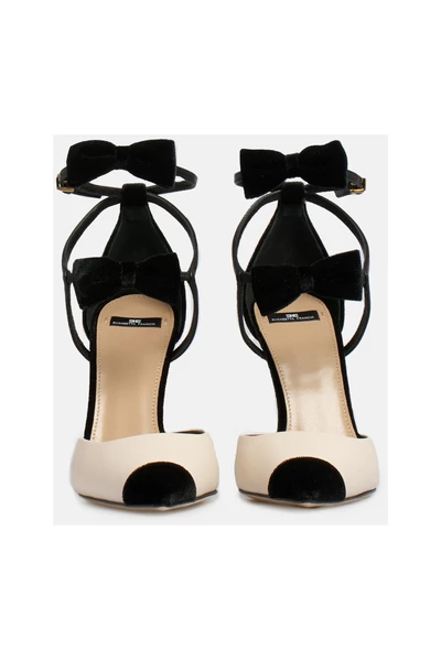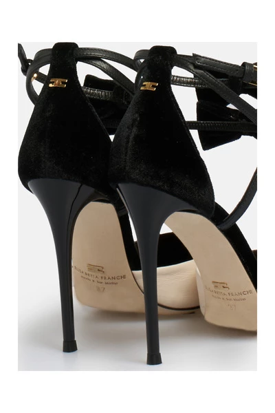 Décolleté Elisabetta -franchi met twee kleine fluwelen vlokken aan de voorkant, enkelband, fluweelpunt op gelakte hiel, micro -logo op de achtergrondhiel 10,5 cm dominantie 100% leer in de AI22 in de AI22