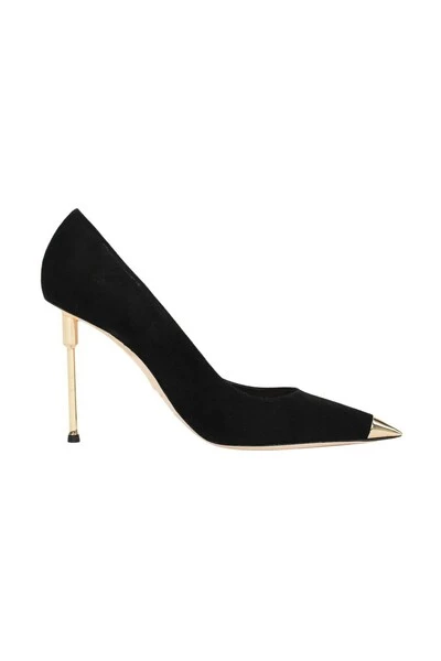 – in suede – gouden sculptuurhak – gouden metalen teen – 10 cm hiel Hoogte – Samenstelling: 100% leer – gemaakt in Italië