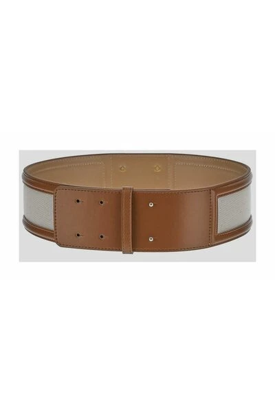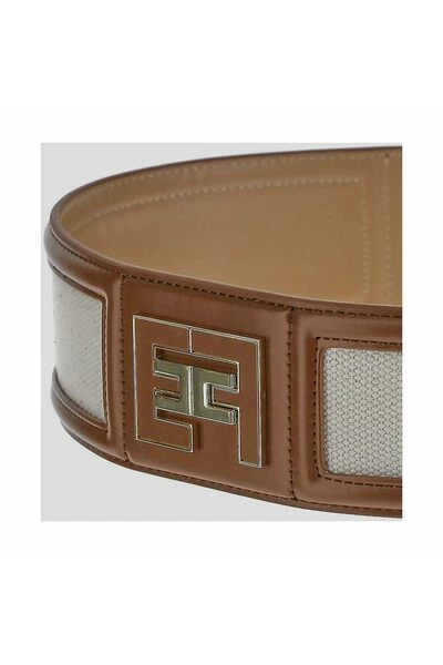 Bruine katoenen logo-plaque riem van Elisabetta-franchi met verstelbare pasvorm, contrasterende afwerking, emaildetail en goudkleurige logo-plaquette.