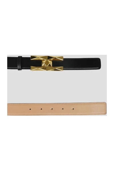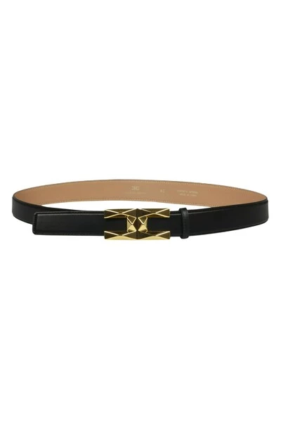 Dunne riem van Elisabetta Franchi, in synthetisch leer met logo gesp. – FW22 – gefacetteerde gesp in goudmetaal – Press -Snap Sluiting – Hoogte: 3 cm – Made in China – Eco -Leer