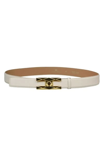 Dunne riem van Elisabetta Franchi, in synthetisch leer met logo gesp. – FW22 – gefacetteerde gesp in goudmetaal – Press -Snap Sluiting – Hoogte: 3 cm – Made in China – Eco -Leer