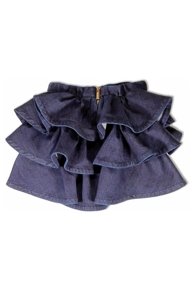 Elisabetta franchi -rokken korte denimrok, ruches ontwerp, logo -plaquette aan de voorkant, achterste ritssluiting. Samenstelling: 99% katoen, 1% elastaan. Behandeling: Machine Wash Max 30 °. Gemaakt in Italië
