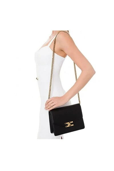 Elisabetta franchi dames s tas in eco-lederen kleur zwart. Schouder tas. Metalen logo flap met dubbele C gefacetteerd. Kaartzakken. Maatregelen: 24 x 18 x 7,5 cm. Model: BS13A26E2110 COMPOSITIE: 55%polyester 45%polyurethaan